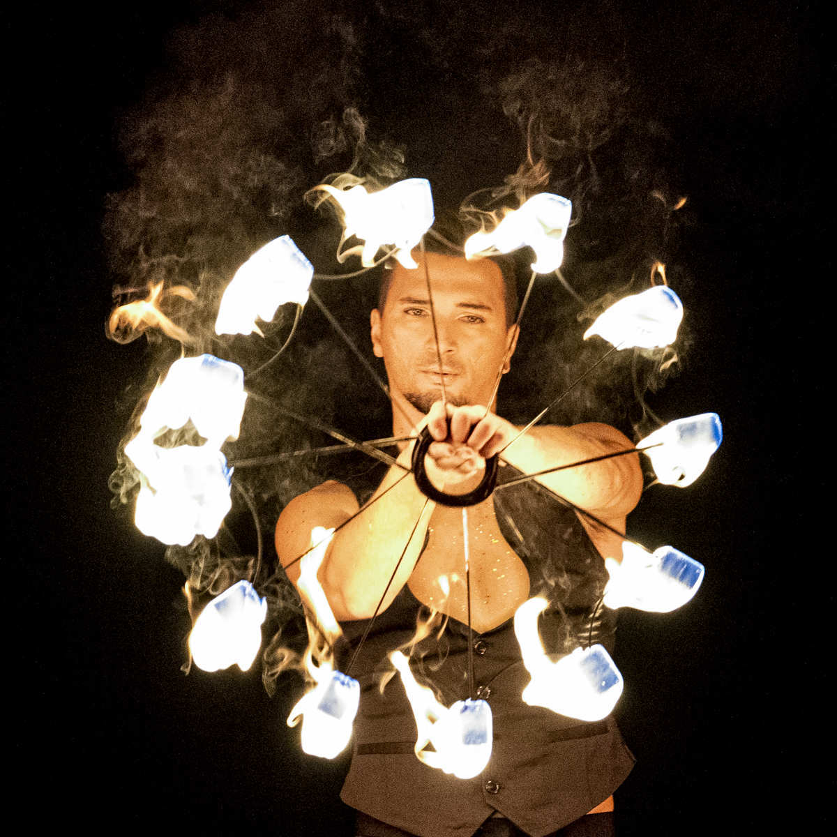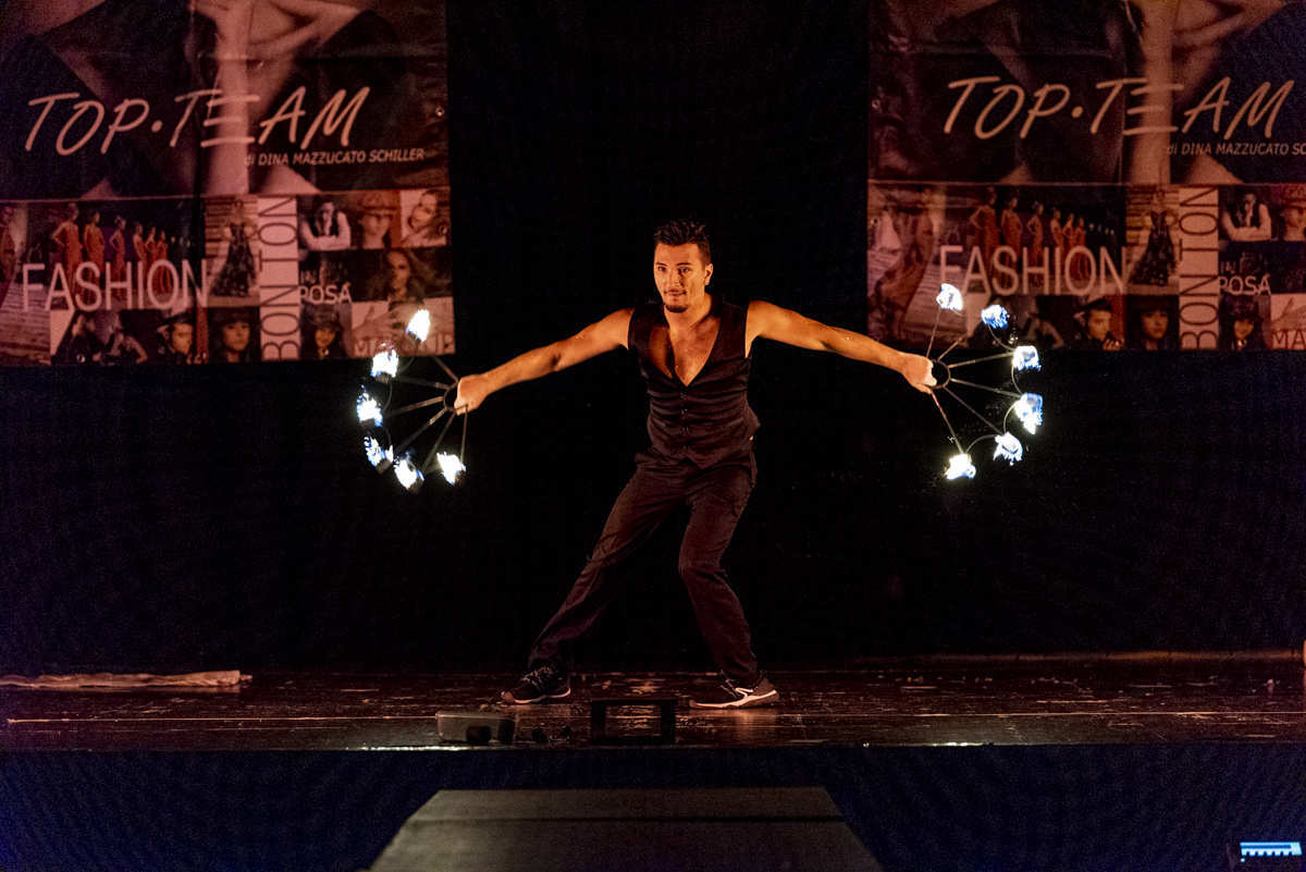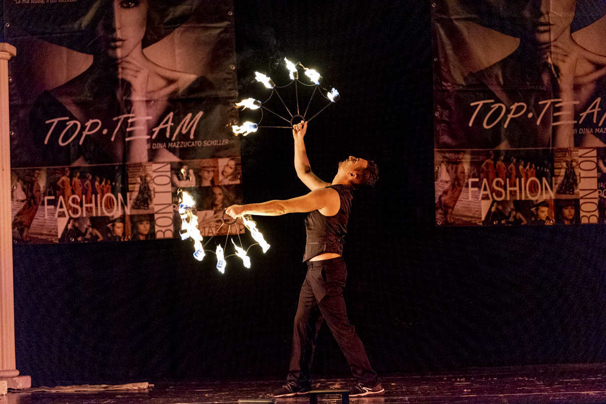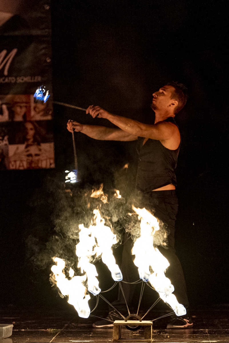 Inizialmente si cimenta sempre di più nella giocoleria di tipo “Spinning” che consiste nell’utilizzo degli strumenti a rotazione.
